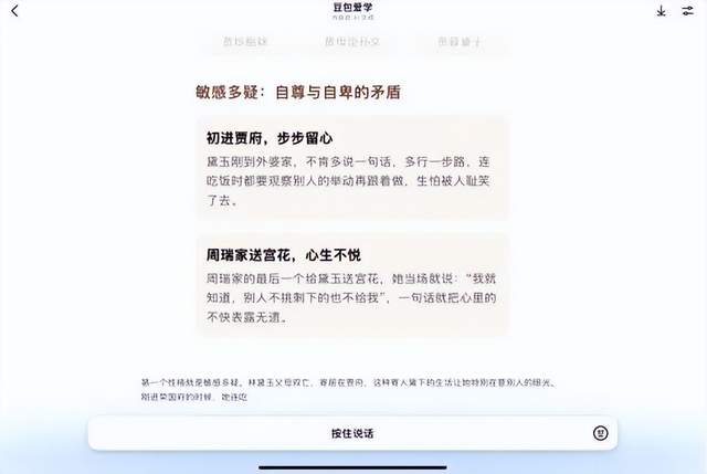 在问到“林黛玉的性格”时,豆包在解析林黛玉每个性格特征,屏幕上就会列出与性格关联的事情。