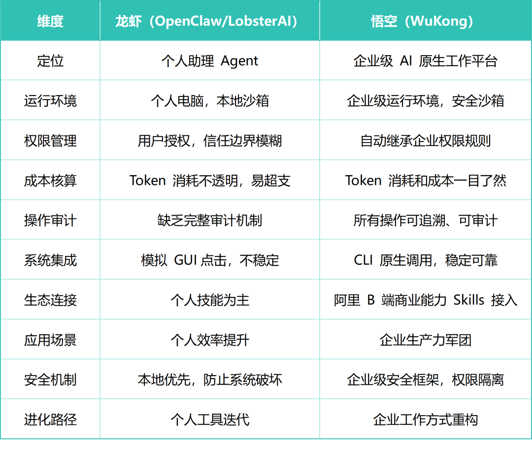 "悟空与其AI Agent有根本区别。"无招在发布会上说,"别的AI Agent解决的是让AI能干活,悟空解决的是让AI在企业里安全、可控、算得清账地干活。"