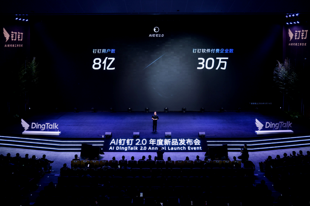 沉淀了对企业真实需求的理解。截止到2025年8月,钉钉服务超过2600万家企业组织,付费企业数超过19万家。在中国A股5500多家上市公司中,有79%在使用钉钉。3月17日,AI钉钉2.0已经实现钉钉用户数8亿,已有超过30万家付费企业客户在钉钉上使用AI。这些数字背后,是对企业工作协同痛点的深刻理解。