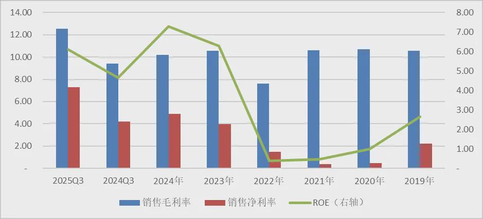 其毛利率常年徘徊在10%左右,净资产收益率(ROE)在景气度高涨的当下,按2025年业绩预告上限估算,亦仅约6% 。这与人们想象中的“全球第一”的盈利能力相去甚远。