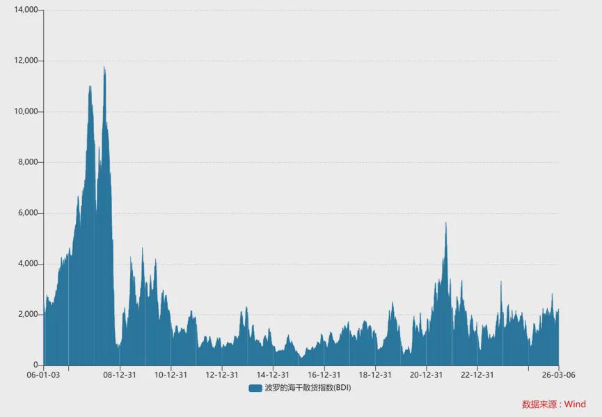 这种极致的压缩与扩张,背后是更为底层的周期之锚——波罗的海干散货指数(BDI)。