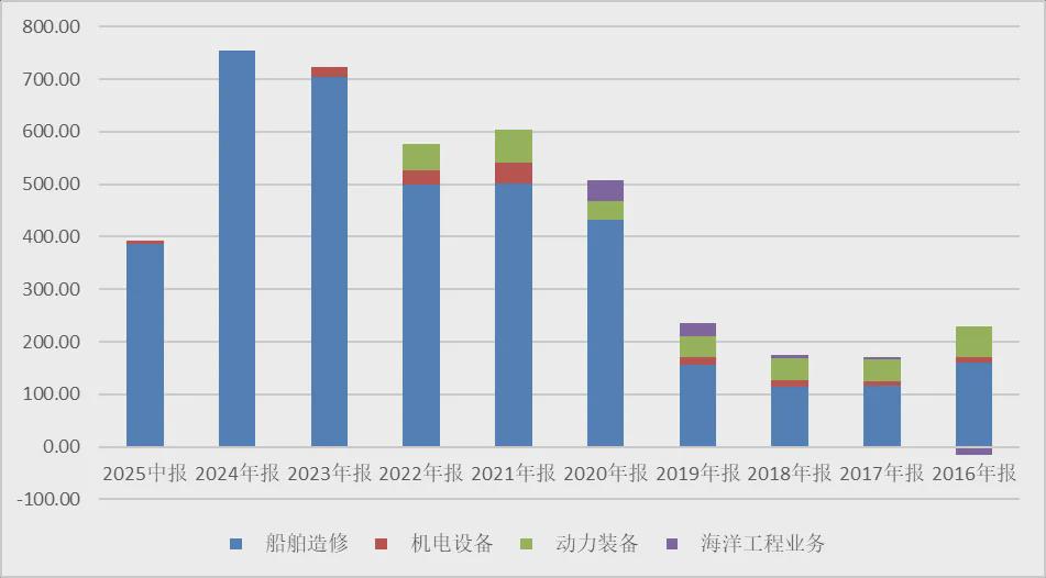 图:公司营业收入结构以船舶造修为主,单位:亿元