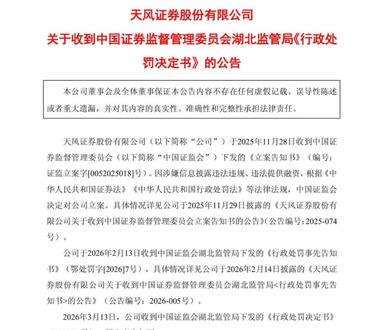 本轮监管处罚呈现“跨区域、高频次、严追责”特征,湖北、福建两地证监局先后亮剑,直指天风证券核心治理与信息披露短板,处罚细节清晰、依据充分,彰显了资本市场从严监管的决心。