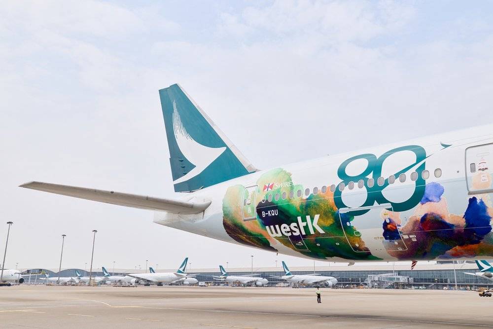 今年3月,国泰与香港西九文化区管理局携手推出“香港精神号”艺术涂装客机