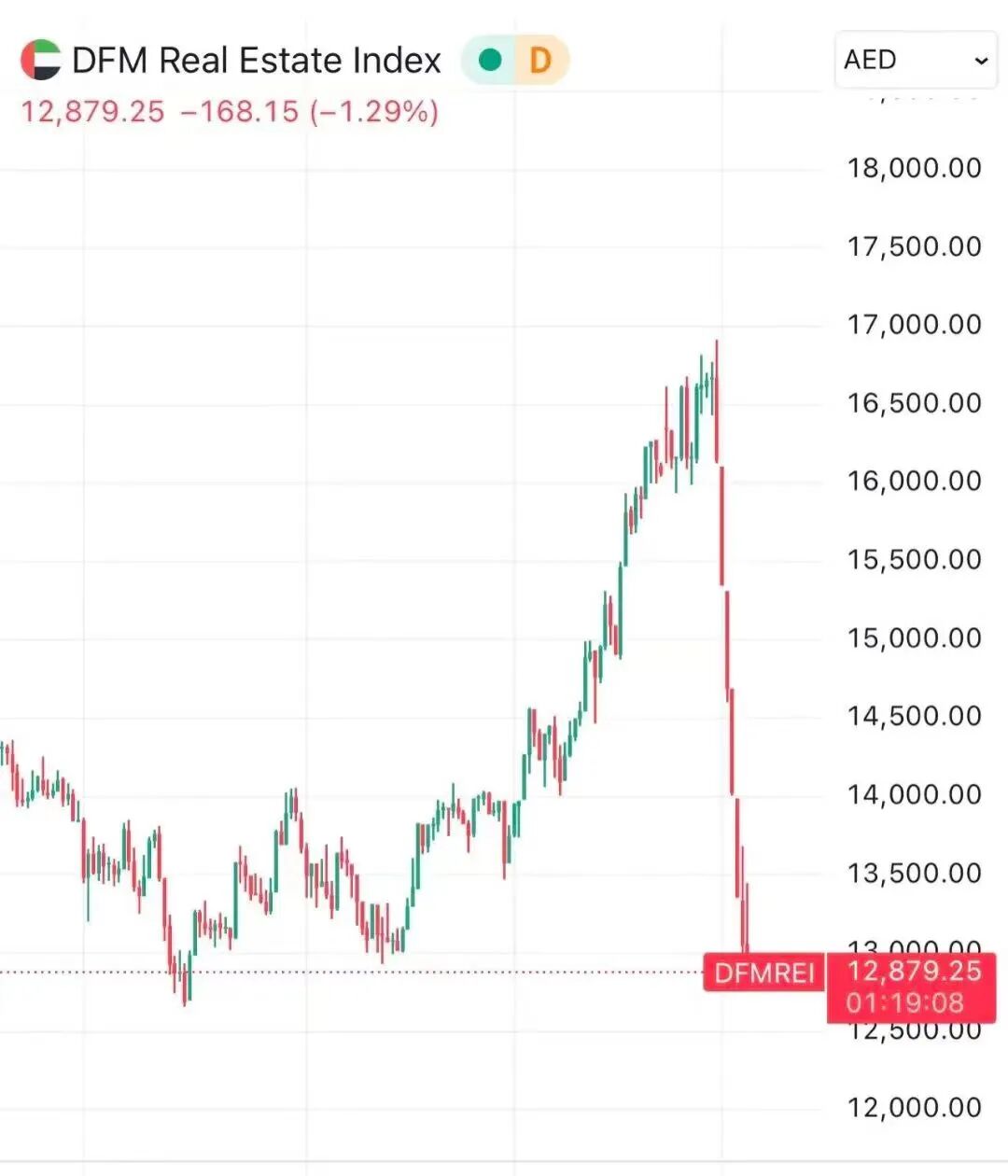 短短十多天内,迪拜房地产指数(DFMRE)已经暴跌31.8%,从2月底的16900点高位垂直跳水至11864点,完全抹去了2025年全年的涨幅,房产过户注册数也从日均800余套暴跌至23套,跌幅达97%。