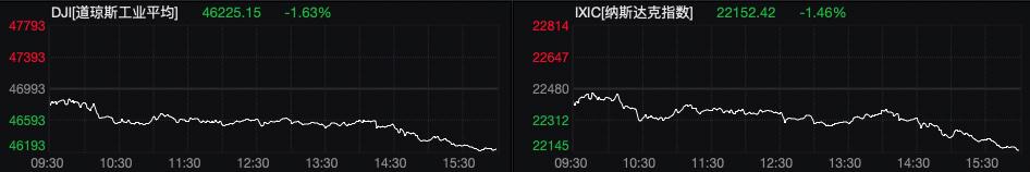 盘面上,大型科技股集体下跌,亚马逊跌超2%,微软、特斯拉、苹果、META、谷歌跌超1%,英伟达小幅下跌。