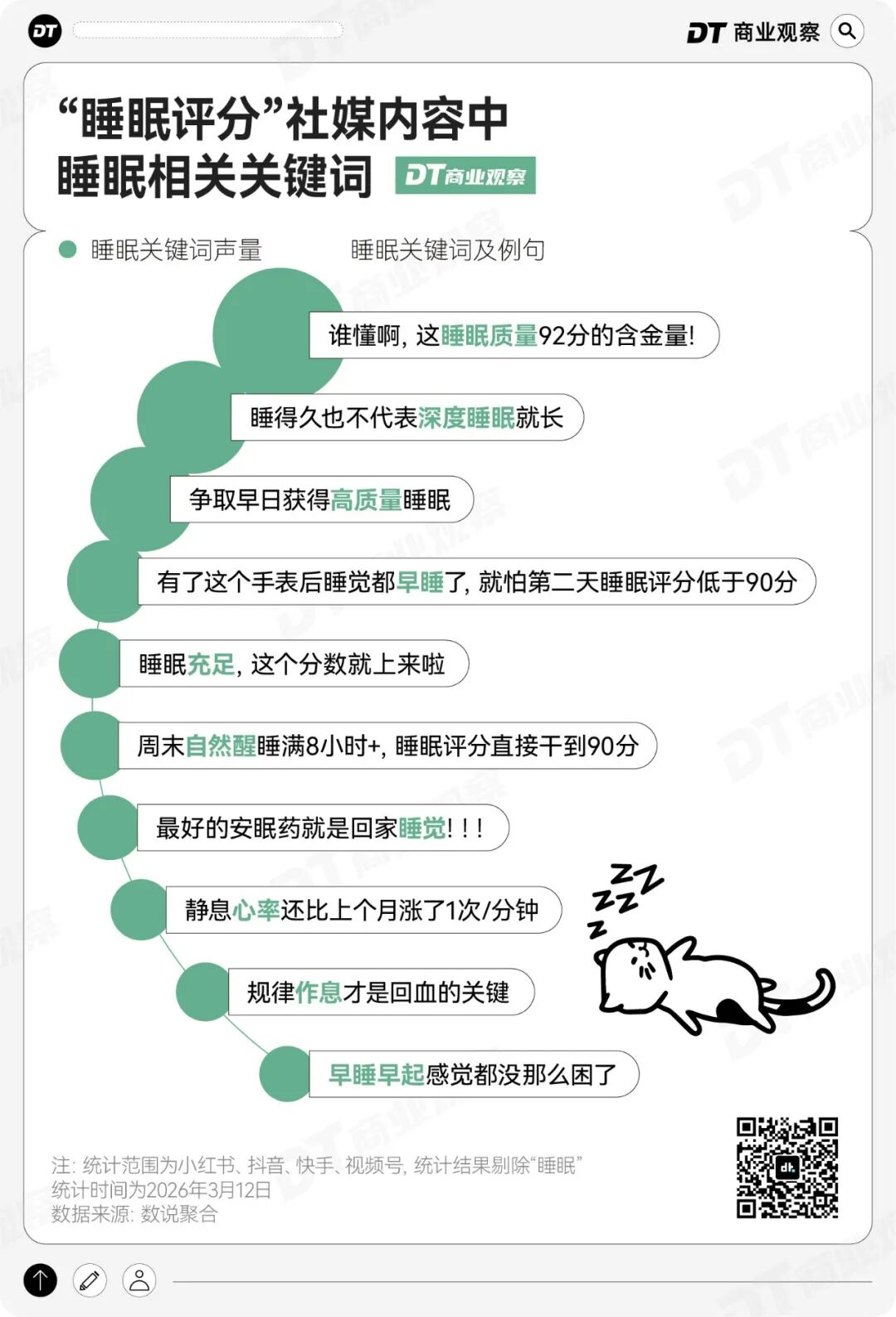 尤其在抖音、小红书这类平台,睡眠分数就像一种“共同语言”,能通过算法迅速聚集起同样关注睡眠的人群,形成强烈的社区感。