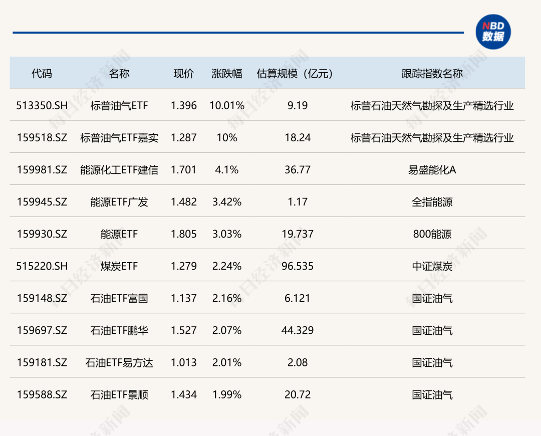 ETF涨跌幅方面,标普油气ETF涨停。
