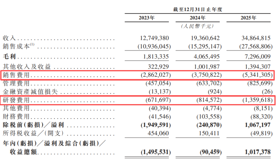 招股书显示,2023-2025年,岚图汽车的 研发费用分别为6.72亿元 、 8.15亿元和13.60亿元 , 占营收比重分别为5.27% 、 4.21%和3.9%。