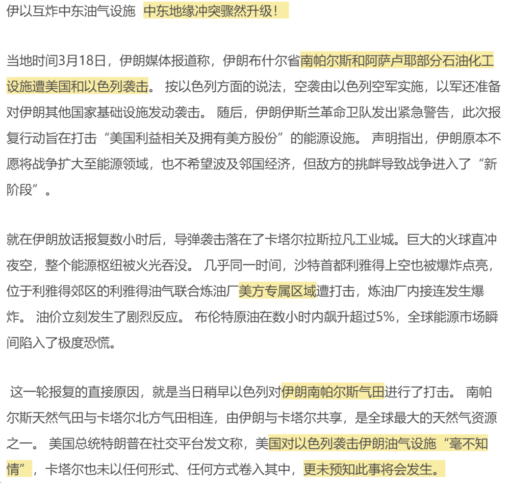 卡塔尔拉斯拉凡工业城作为全球最大液化天然气(LNG)枢纽,于2026年3月19日遭伊朗弹道导弹袭击,引发火灾并造成广泛结构性破坏。该设施年产能占全球LNG供应的20%,主要出口欧洲与亚洲市场。此前因中东冲突升级,该设施已于3月初停产,本次袭击进一步推迟复工时间,预计修复周期需数周至数月。受此影响,欧洲TTF天然气期货单日涨幅超6%,布伦特原油突破111美元/桶,亚洲LNG现货价格同步攀升。