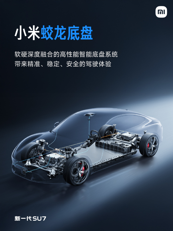 小米在此次发布会上首次推出"蛟龙底盘",定位为软件算法与硬件架构深度融合的高性能智能底盘系统。