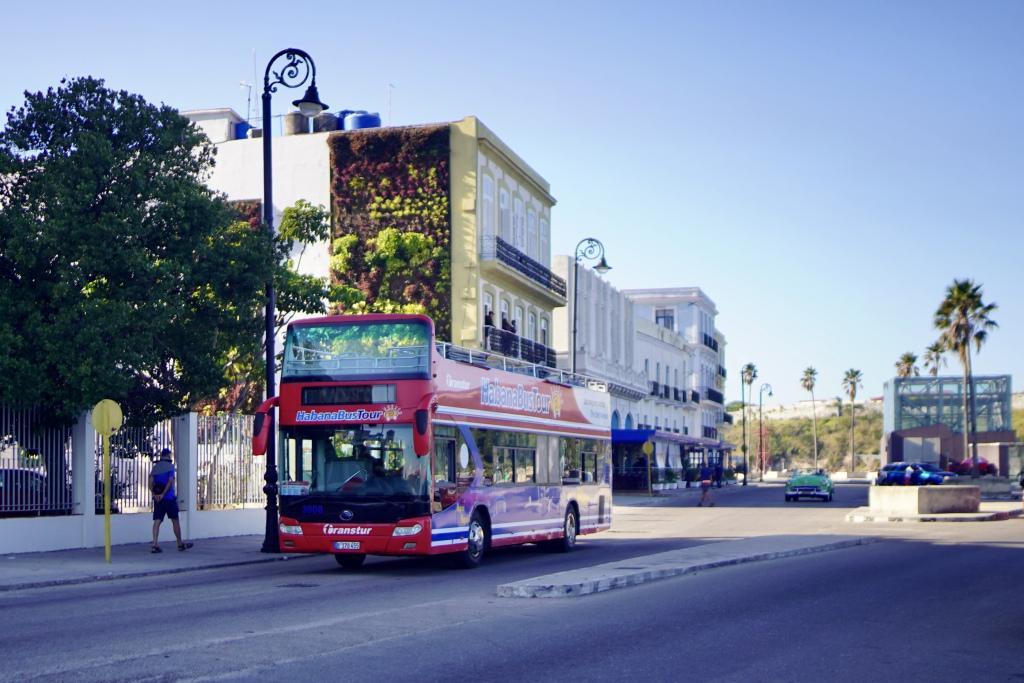 2月13日,在古巴首都哈瓦那,一辆旅游巴士行驶在街道上 图/新华社