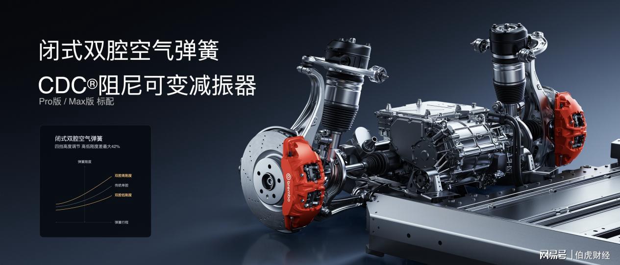 首先是硬件配置升级,小米蛟龙底盘全系装配前双叉臂、后五连杆独立悬架系统,Pro版和Max版配备闭式双腔空气弹簧和CDC®阻尼可变减振器,可智能识别路面状况,通过主动调节悬架,降低刚度以缓冲冲击,通过后再增大阻尼抑制车身晃动,大幅提升通过舒适性;同时车辆支持悬架自动升高功能,可记忆举升点位,在进入对应地理围栏时自动升高车身,驶出后自动恢复原车高度,兼顾通过性与日常驾乘质感。