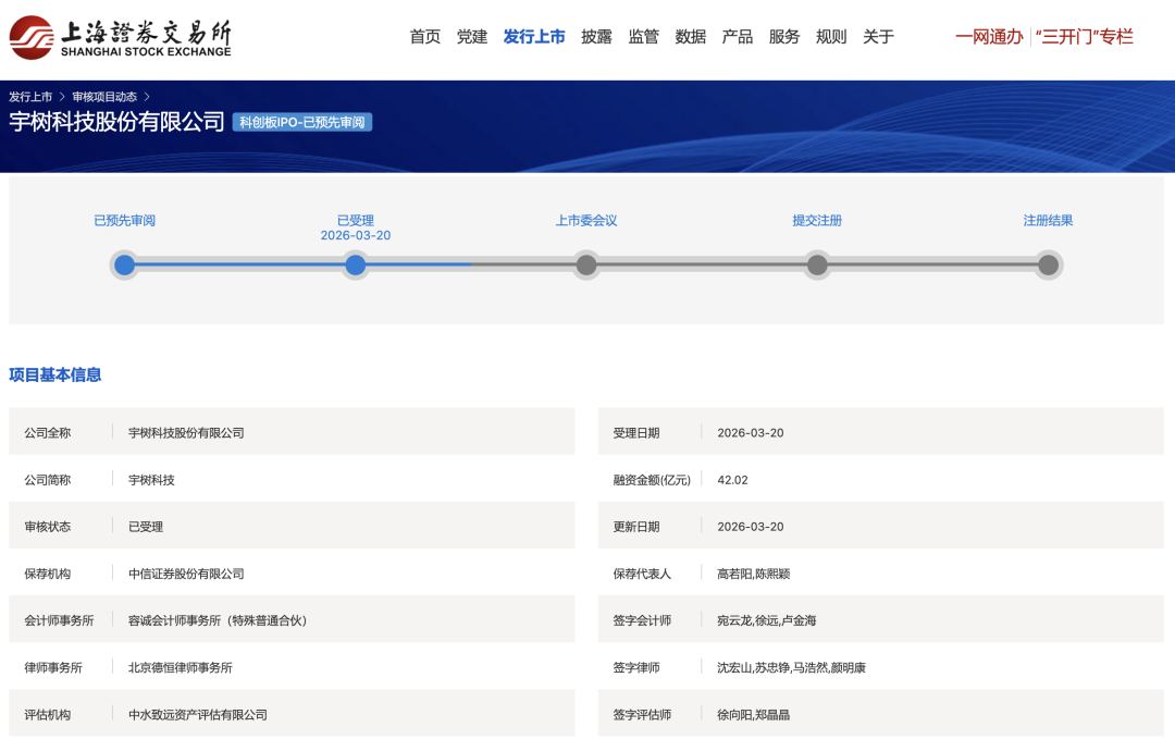 3月20日,据上交所官网,上交所受理宇树科技股份有限公司科创板IPO申请。