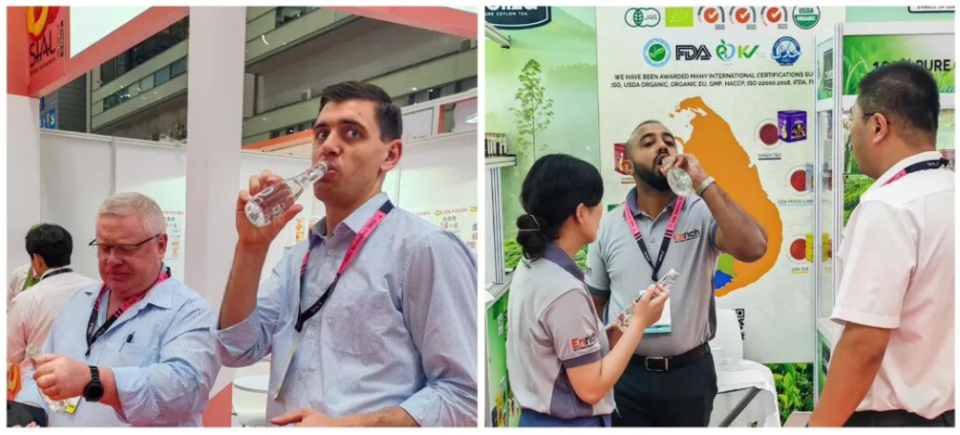 西雅展上各国参会者品尝林源春产品 图源:网络