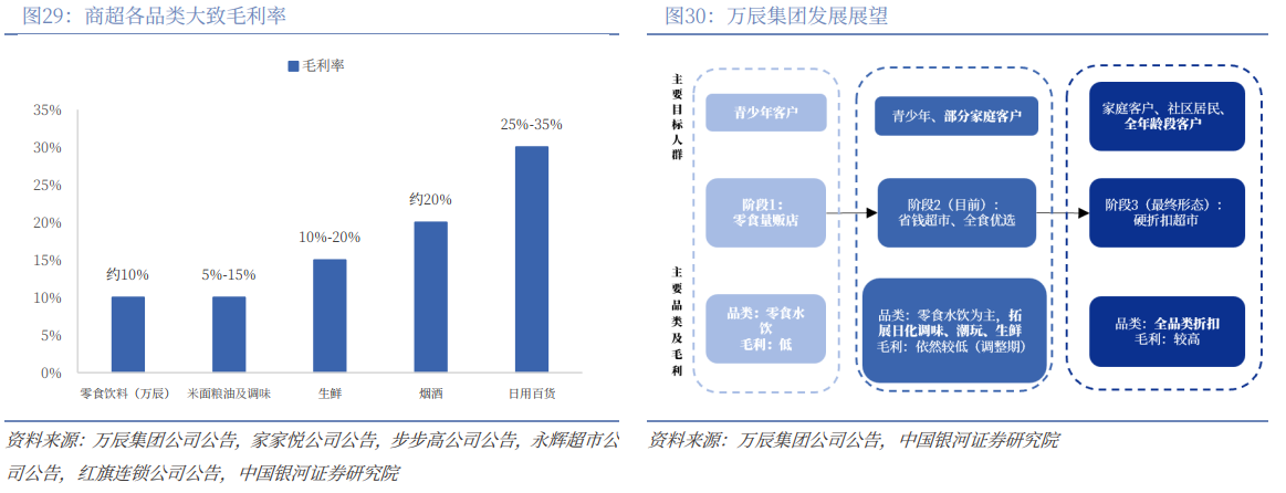 而事实上,万辰集团早已尝试和布局。自2024年底开始,万辰集团在“好想来零食乐园"门店基础上,陆续推出了面积更大的“好想来省钱超市”、“好想来全食优选”门店,增加烘焙、水果、冻品、日化、粮油调味、常温乳品、低温饮品、会员店商品等品类的售卖。