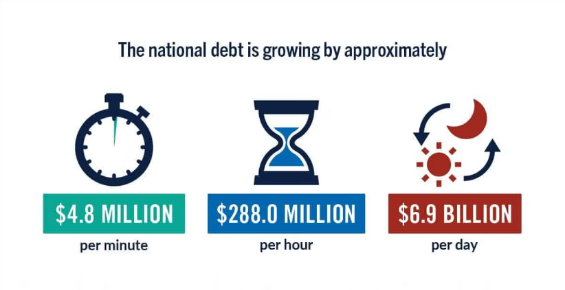 美国国会下属机构政府问责局(Government Accountability Office, GAO)指出政府债务攀升对美国民众和企业将产生诸多影响:房贷、车贷等借贷成本上升;企业可投资资金减少导致薪资水平降低;商品和服务价格上涨。主张平衡预算的人士警告,持续扩大举债、利息支出不断增加的长期趋势,将迫使美国民众在财务上面临更加艰难的取舍。
