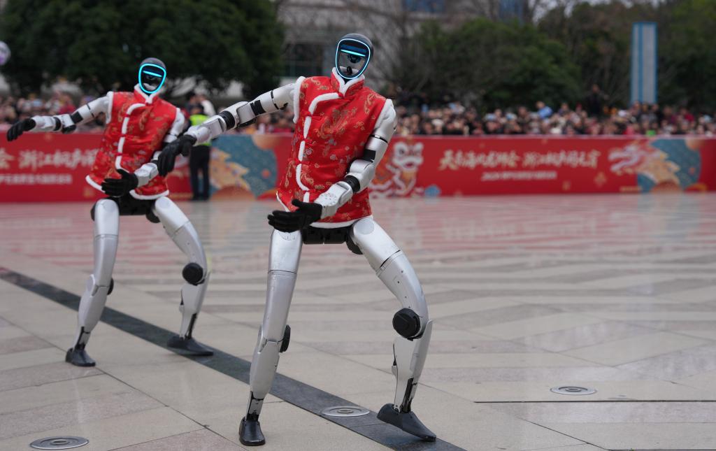 2026年2月28日,宇树科技人形机器人在浙江省桐庐县中心广场表演舞蹈。 本文图均为 新华社 资料图