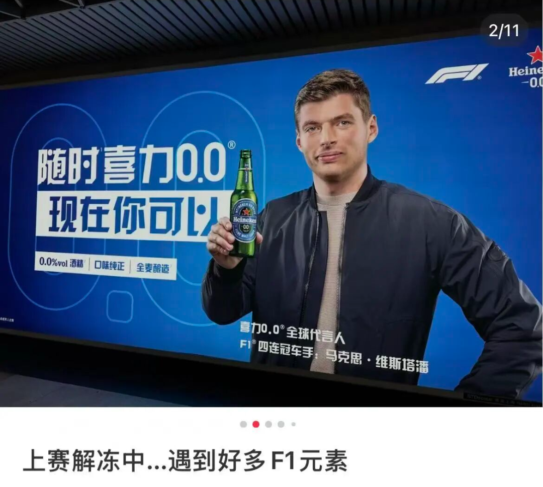 从你踏上上海土地的那一刻起,F1元素就包围了你。地铁11号线被贴上车队涂装,成了“F1痛铁”;南京东路地铁站里,维斯塔潘举着啤酒邀你“Cheers”;Costco超市里,随时可能偶遇来采购的法拉利车手勒克莱尔,有人在街头拍到谢霆锋、林志颖、关晓彤、黄景瑜等一众明星。