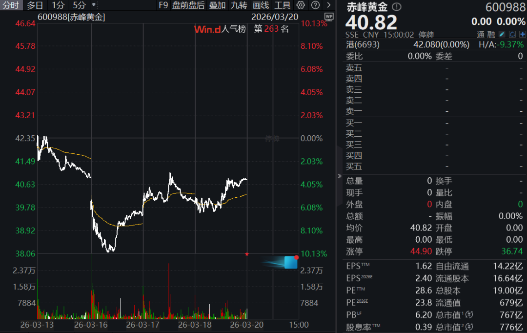 3月19日,赤峰黄金停牌,公司前一日晚间公告,李金阳及其一致行动人正在筹划将所持公司股份进行转让的重大事项,该事项可能导致公司实际控制人发生变更。