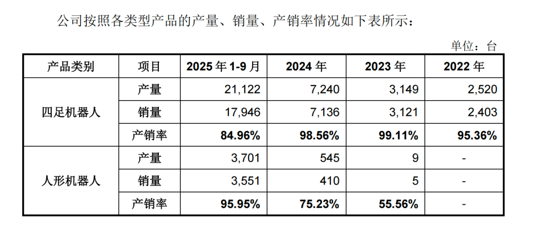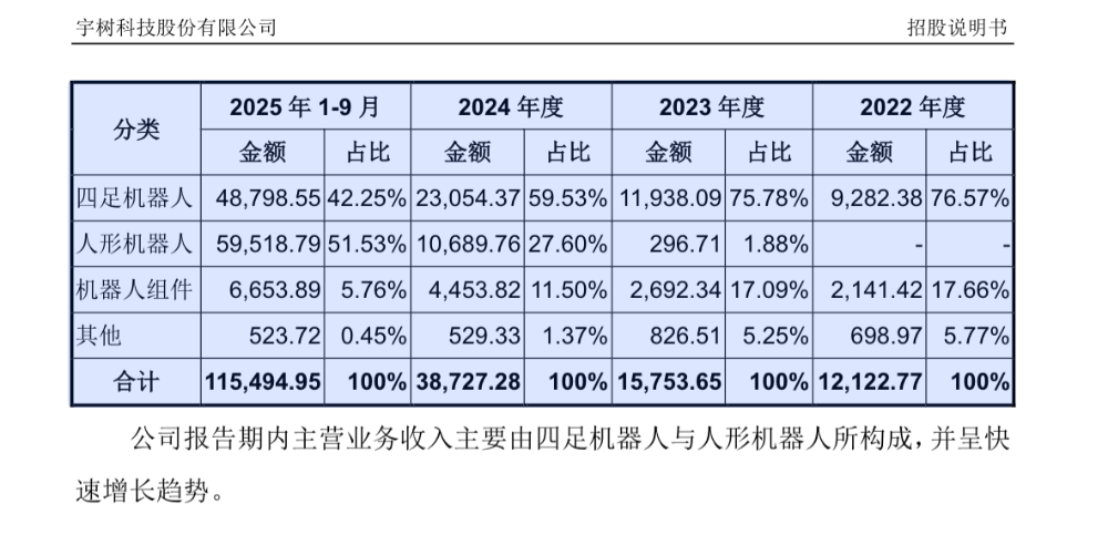 关键数据2,业务收入占比。招股书显示,从以四足机器人为主(2023年占比75.78%),快速转变为人形机器人主导(2025年1-9月,人形机器人收入占比达51.53%,首次超过四足机器人的42.25%)。
