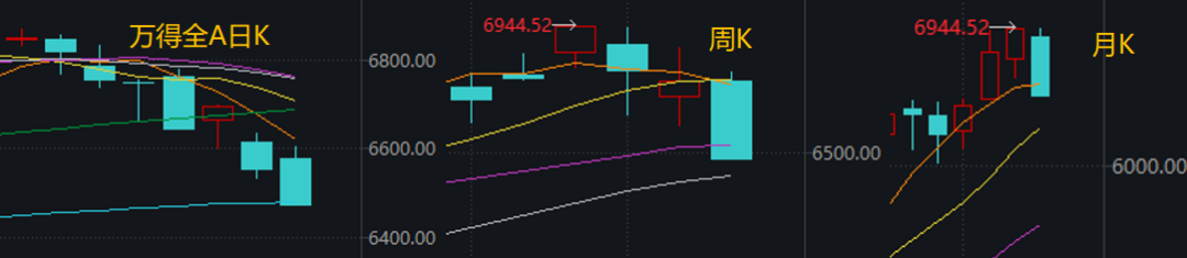 Wind数据显示,万得全A指数日线4阴1阳,周线则录得3连阴,月线则暂时跌破了5月均线。