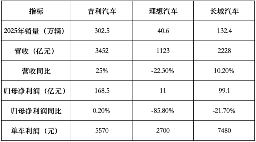 2025年,吉利汽车(00175.HK)交出了一份“史上最强”成绩单。营收3452亿元创历史新高、销量首次突破300万辆、新能源渗透率过半……但财报中另一个数字同样刺眼,归母净利润168.5亿元,同比仅微增0.2%。