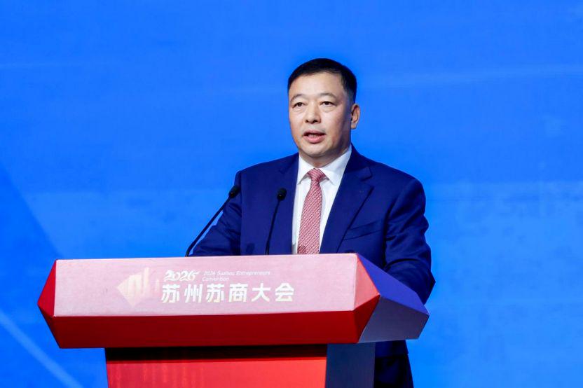 “2026苏州苏商大会”尚未开始,苏州市委书记、市长来到酒店大厅,与到场企业家代表们逐一握手致意。