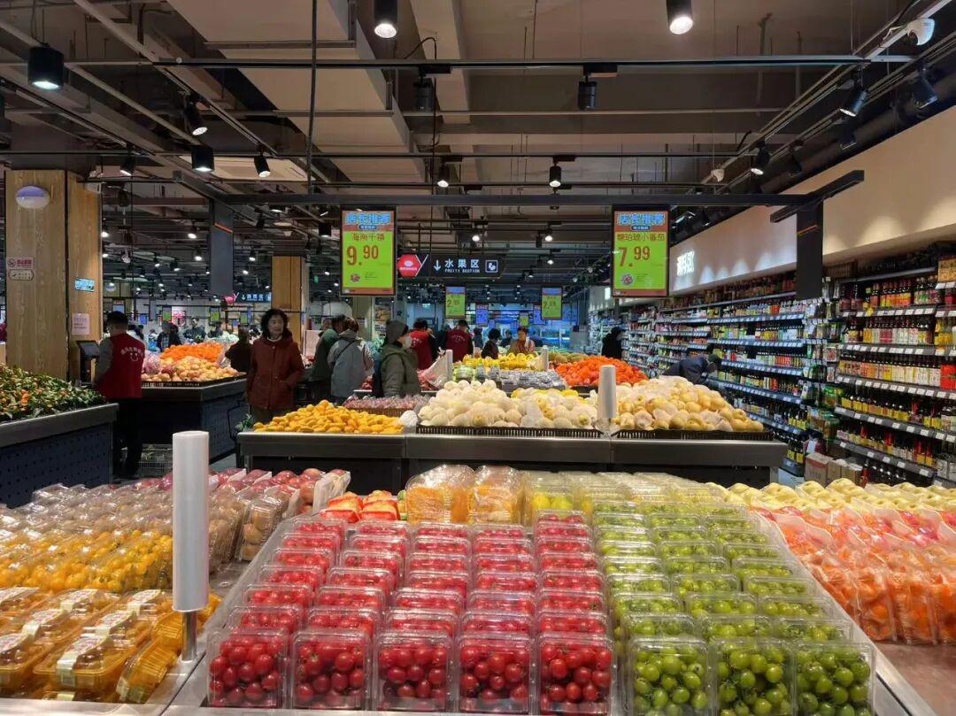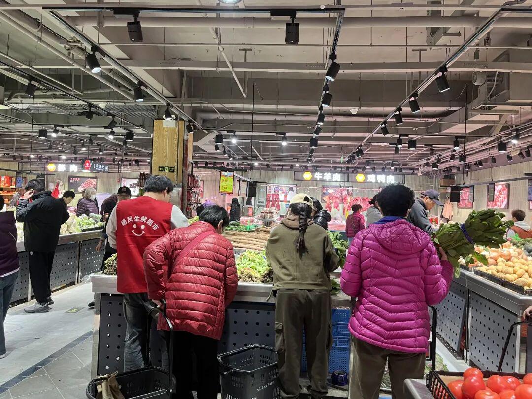 但德凤生鲜超市也保障了从果蔬到干货、主食的“卖相”都尚可,尤其是生鲜区,SKU非常丰富,生鲜区虽没有什么讲究的陈列和灯光辅助,但仅凭商品本身的丰富与饱满度,在客流氛围的加持下,就足以让人感受到浓厚的“烟火气”。它的人气让你无法联想“经济下行与消费寒冬”。