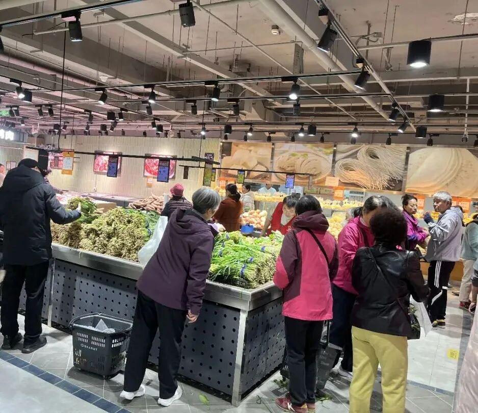 在《商业观察家》探访的德凤北京门店,超市都呈现了同一道风景线:生鲜果蔬堆头前尽是挑挑拣拣的“白头”攒动,购物车内都是满满当当。