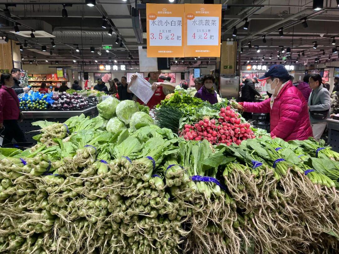 很多附近社区大爷大妈是在两家超市都购物,经常进行“比价”,哪家哪款菜今天做特价就在哪家买。