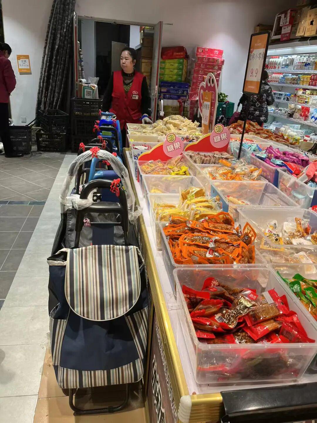 不管多小的门店,德凤超市都会划出一块专属面积来负责提供老年人小手拉车的寄存看管服务。专门的一位店员会负责看管和发牌、收牌的工作。