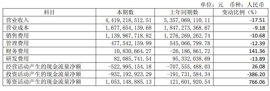 一是成本端这边。尽管营收下滑17.51%,销售费用仅下降了10.68%,为11.40亿元;