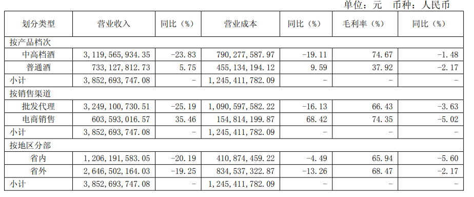 但沱牌虽然稳住了基本盘,但其37.92%的毛利率,根本撑不起整体的利润结构。而毛利率74.67%的中高档酒,恰恰是那个卖不动的。
