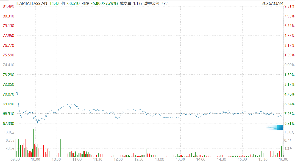 三是一家研究机构发布对全球团队协作软件开发商Atlassian的负面报告,称其合作伙伴本季度业绩略低于计划,且2026年增长料将放缓。Atlassian收盘重挫超8%。