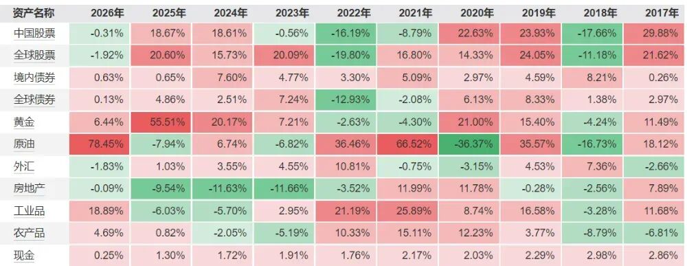没有哪一种资产能在所有环境中都赢。但一个合理分散的组合,可以在大多数环境中不输太多。