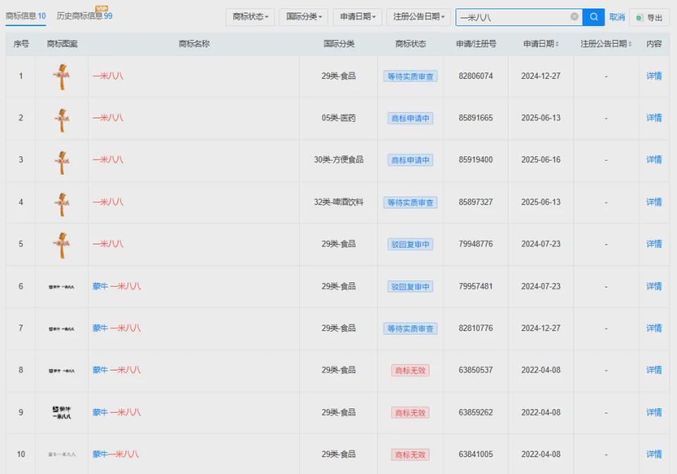 值得注意的是,其曾多次申请“一米八八”商标,均被驳回。驳回理由直指要害:直接表示了商品的功能、用途,违反《商标法》规定。