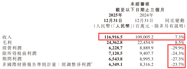增收不增利,并且经营利润大跌30%。