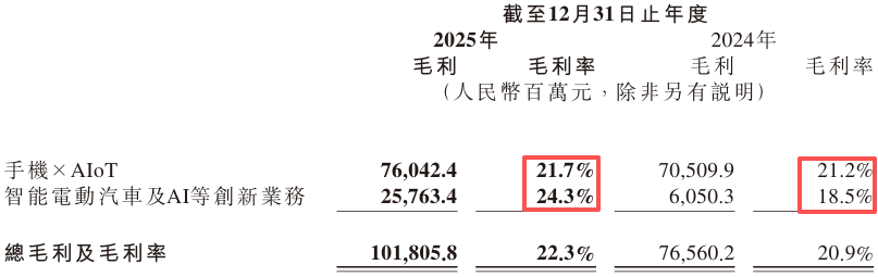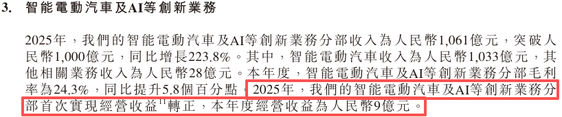 2025全年,小米汽车及AI创新业务分部收入1061亿,增幅高达223.8%;