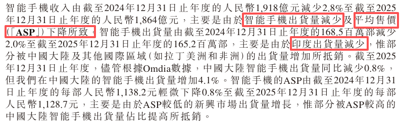 2025年,小米智能手机出货量1.65亿部,少卖了330万部,主要是由于印度出货量减少。