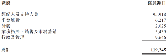 截至2025年末,贝壳雇员总数119,245人,较2024年底的135,072人净减少15,827人,降幅达12%。其中经纪人及支持人员从106,541人减少至95,918人,净减10,623人。
