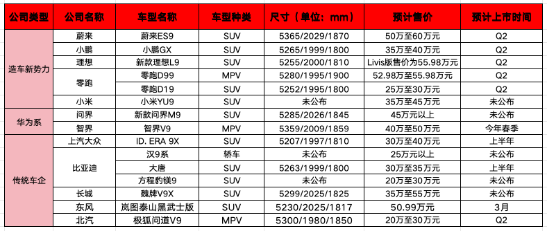 当第一季度收官,新款理想L9、蔚来ES9、智界V9等十余款以“9”命名的旗舰车型将进入市场。