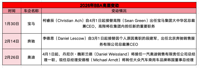 除了调价格、推新品,为配合这场反击,BBA于今年初同步还对中国市场高层进行了人事调整。三位新帅均拥有新能源汽车实战经验。