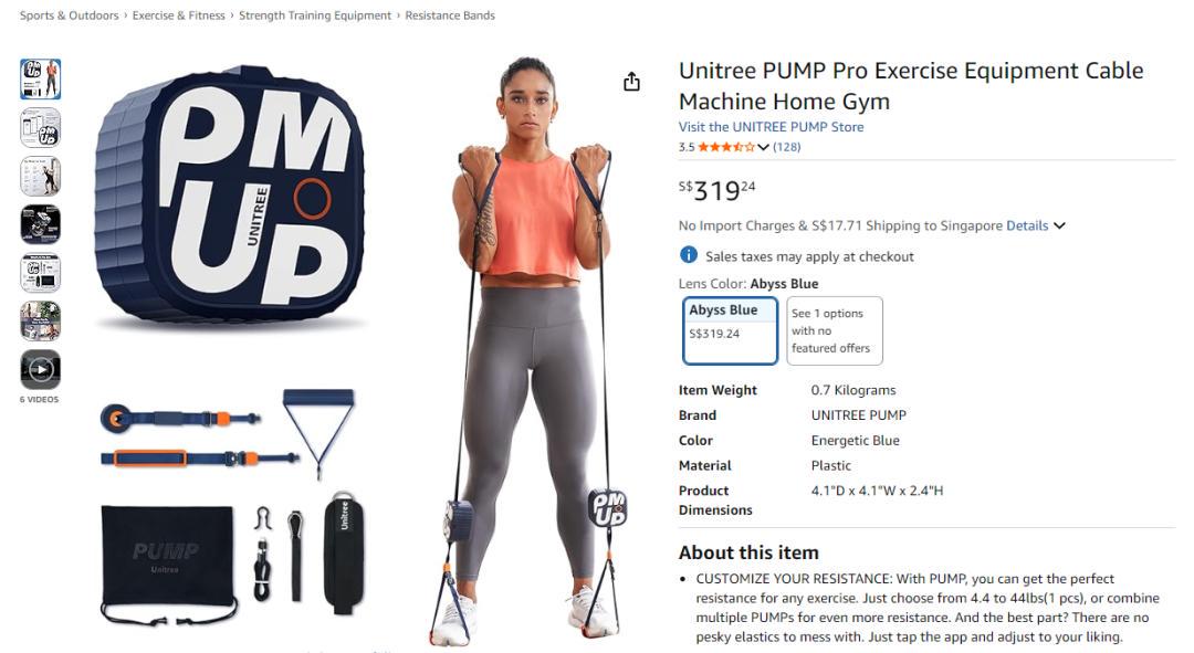 宇树科技真正在海外“爆单”,则靠的是与机器人关联并不大的健身泵。2023年2月,宇树科技开始在亚马逊美国站销售“PUMP健身泵”,至今也是亚马逊上的主力产品。上线第一个月就销售数十万美元,受到了全球海外消费者的广泛赞誉。时至今日,亚马逊日本站上宇树的PUMP健身泵仍占据运动品类榜首。