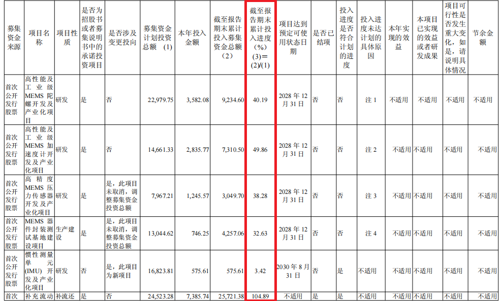 但是2025年8月,芯动联科公告将上述四大募投项目实施期限延长至2028年12月31日,同时调减部分项目投资金额,将1.68亿元调减资金投入新项目“惯性测量单元开发及产业化项目”,该新项目实施期限至2030年8月31日。