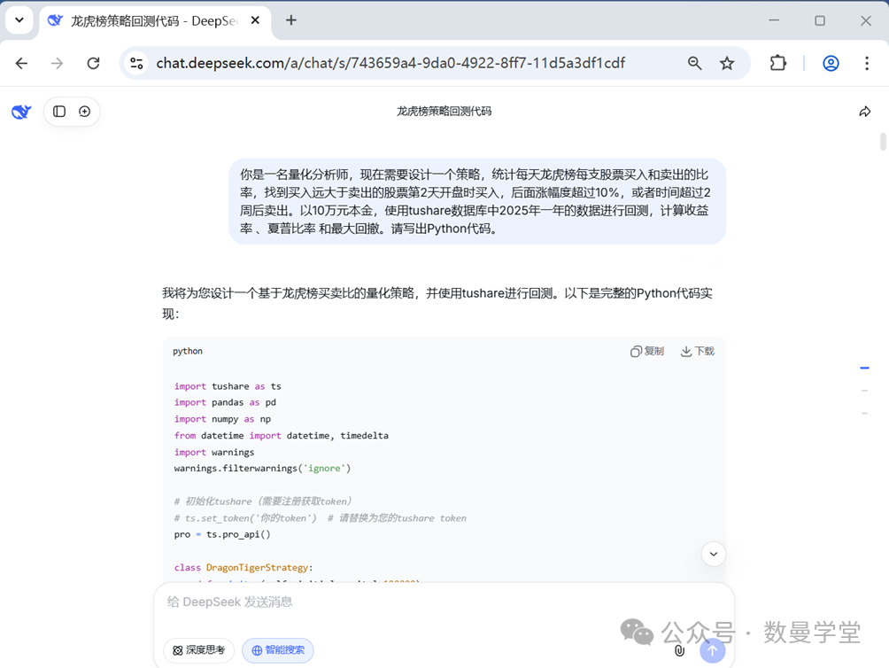 数曼科技公司颁发《DeepSeek AI量化实战训练营结业证书》量化实习/就业内推机会