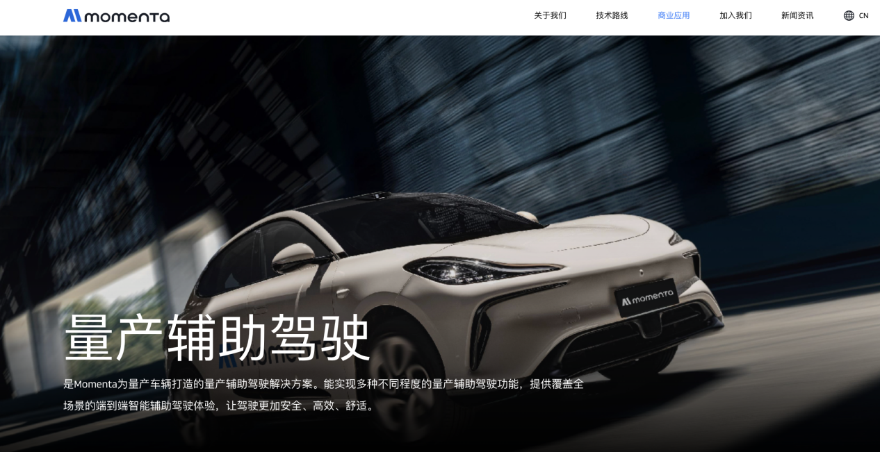 公开资料介绍,Momenta成立于2016年,是高阶智能驾驶方案领域的头部供应商,致力于“打造自动驾驶的大脑”。其为实现可规模化自动驾驶开拓了全新路径,即基于数据驱动的“一个飞轮”的技术洞察和“两条腿走路”的产品战略,实现量产辅助驾驶与自动驾驶Robo的规模化应用。
