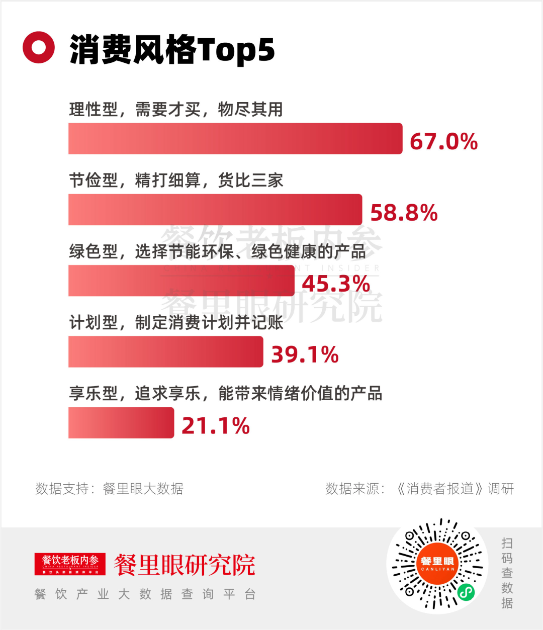 在消费风格的问卷调研中,排名前三位的是理性型、节俭型和绿色型。“需要才买,物尽其用”的理性型消费者和“精打细算,货比三家”的节俭型消费者超过了50%。消费决策逐渐“内驱”,消费者有着自己坚定的决策标准,外界声音的影响逐渐变小。