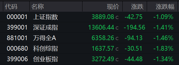 3月26日,四大指数集体收跌。沪指跌1.09%,深成指跌1.41%,创业板指跌1.34%,科创综指跌1.83%。
