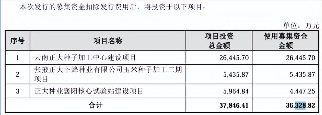 不过,正大种业初步递表里,募集资金是3.633亿元,此后上会前,砍掉了正大种业襄阳核心试验站建设项目,并下设了前两项目的募集资金金额,总体募资金额降至2.83亿元,这种审核期的减少募资额和募资项目并不多见,或可见其充分性和必要性需要商榷。